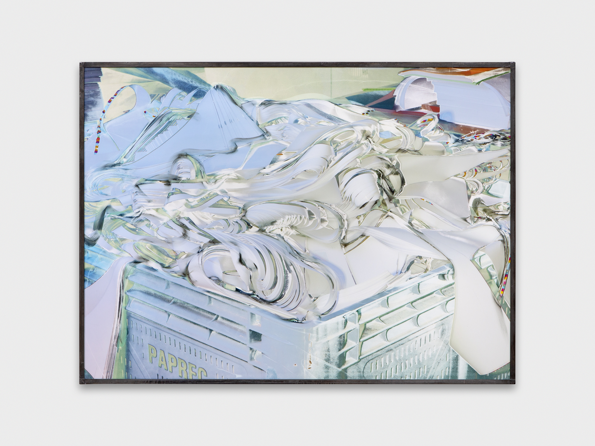Inkjet print on plastic foil, fingertips intervention, handmade lead frame, anti-reflective glass, 31 × 42cm
