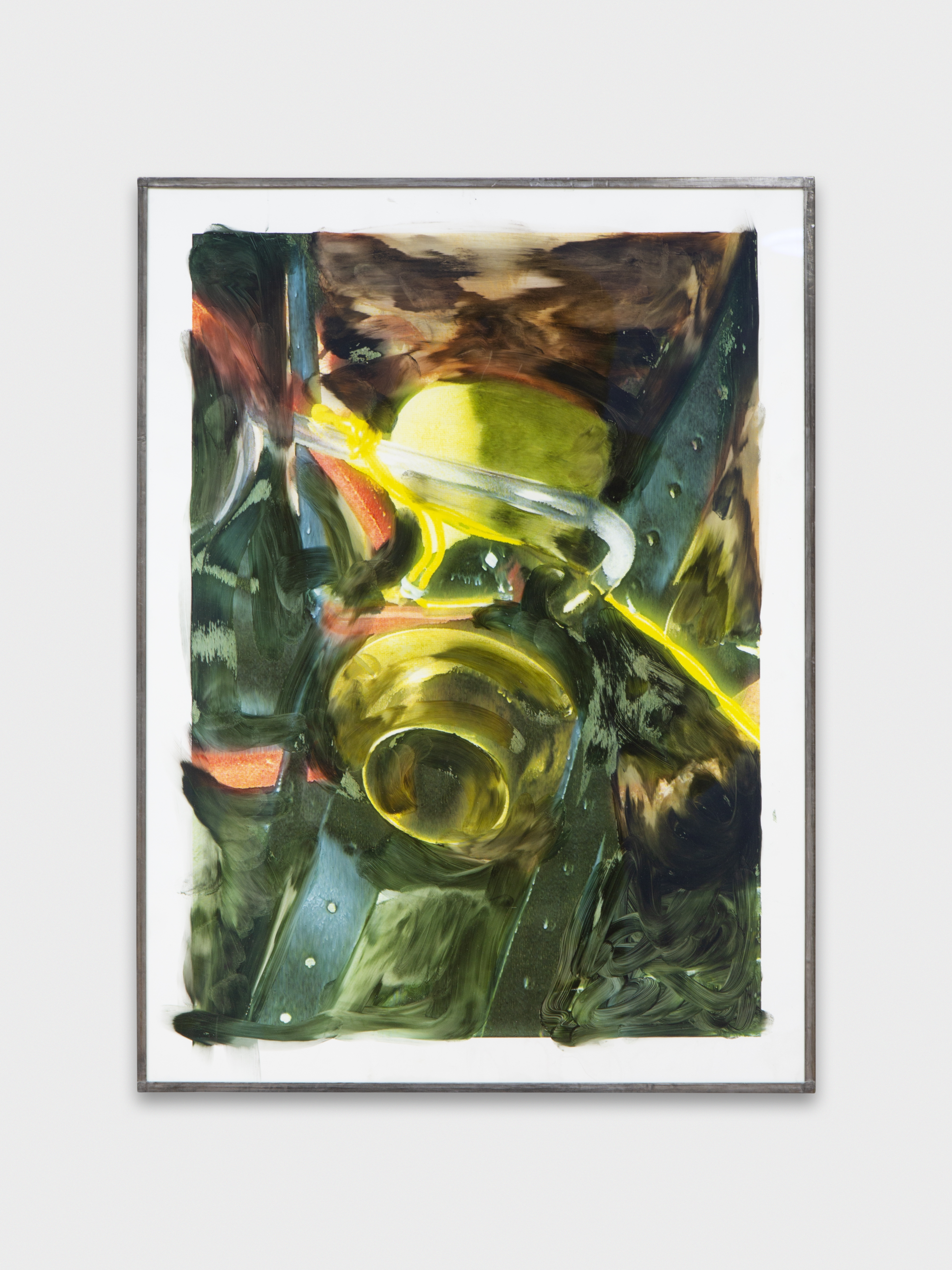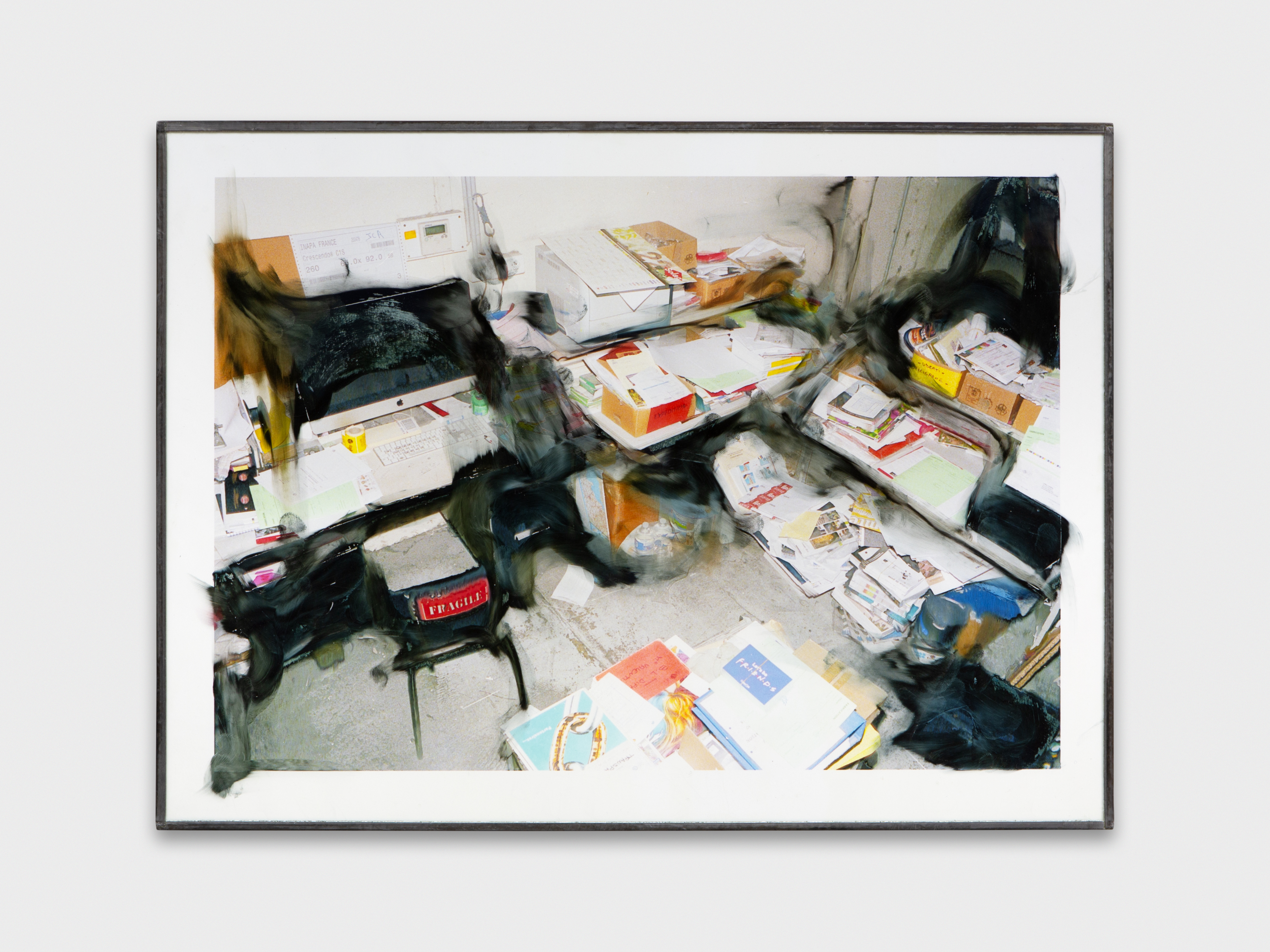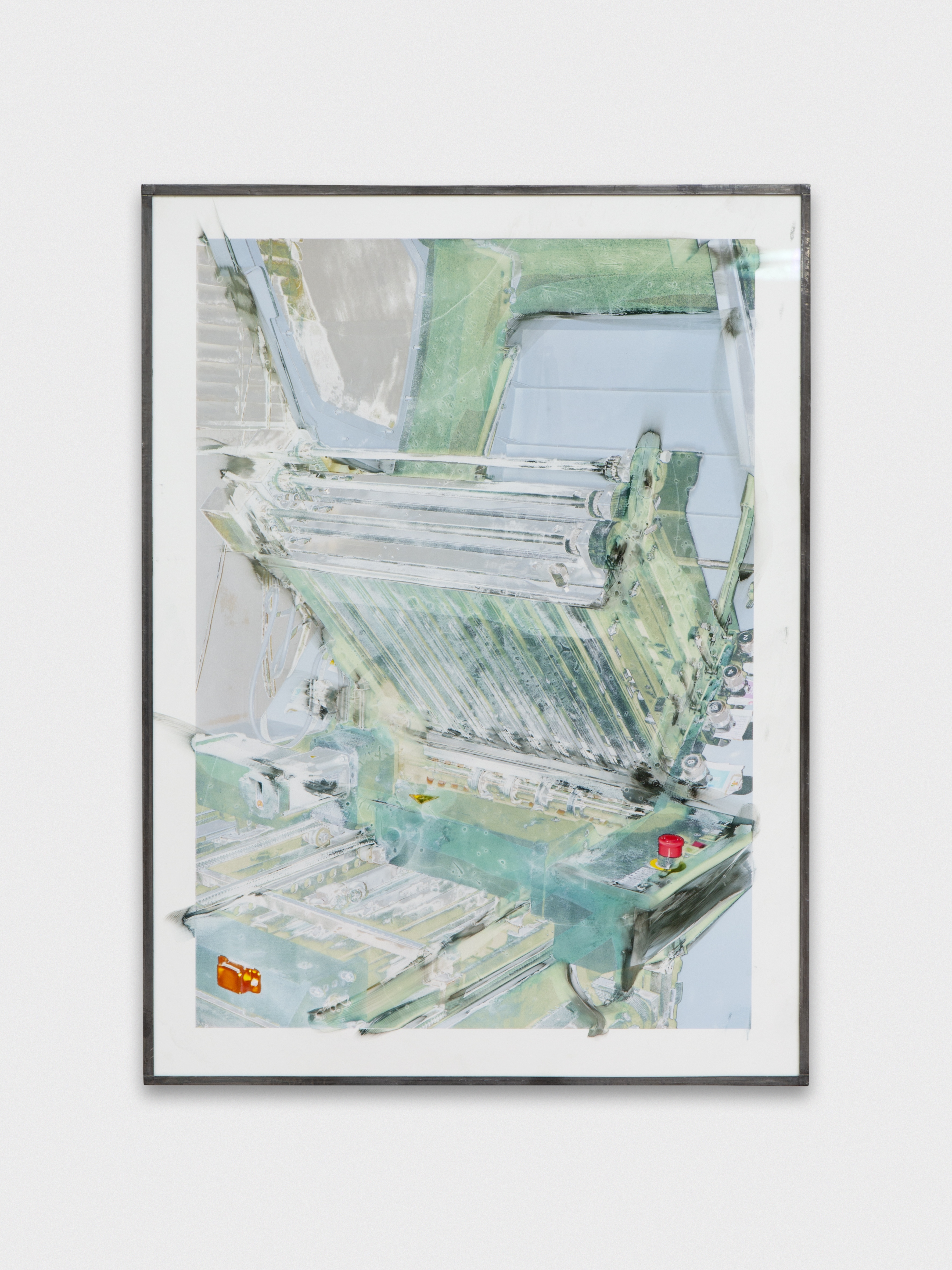 Inkjet print on plastic foil, fingertips intervention, handmade lead frame, anti-reflective glass. 31 × 42 cm