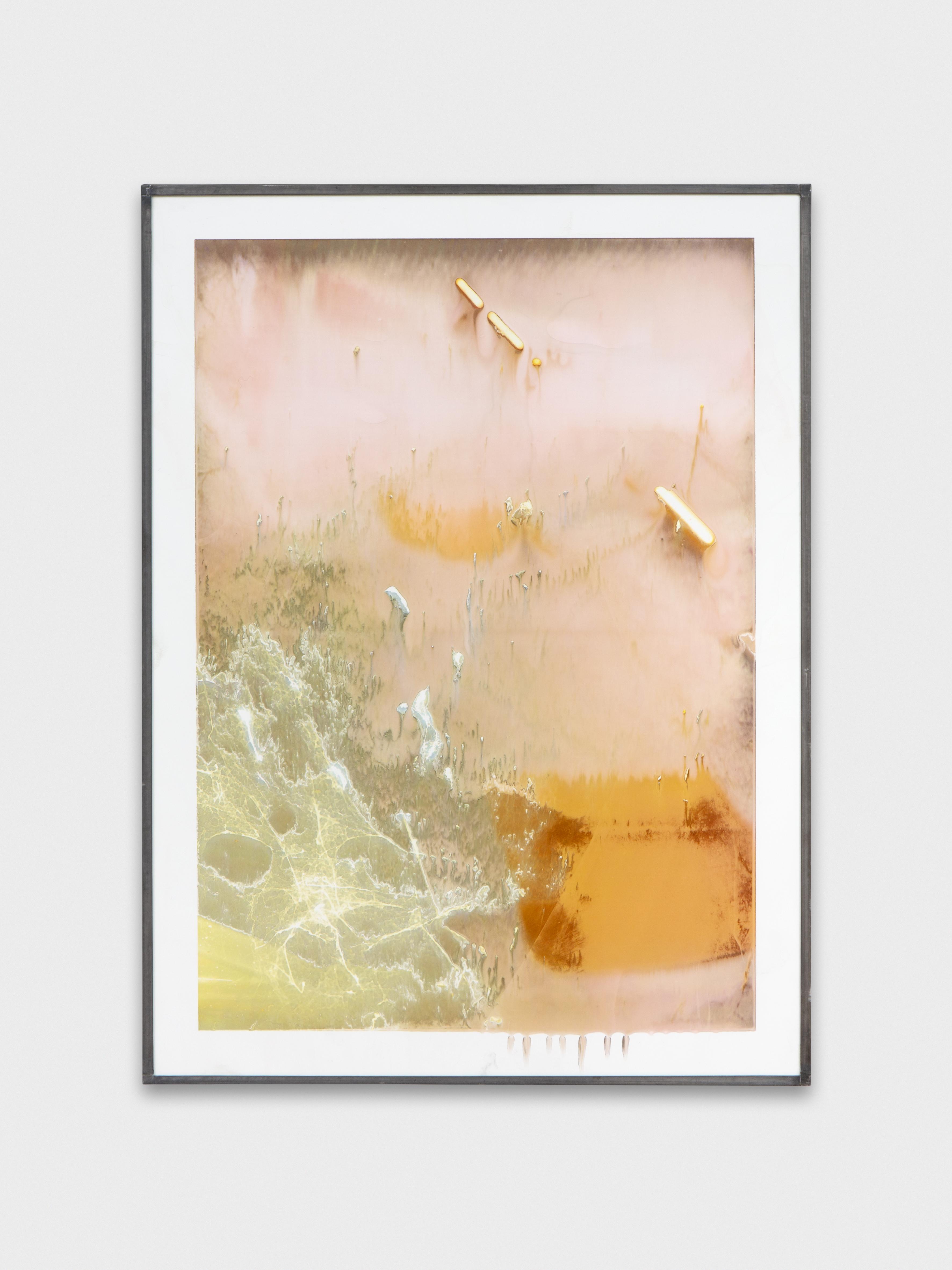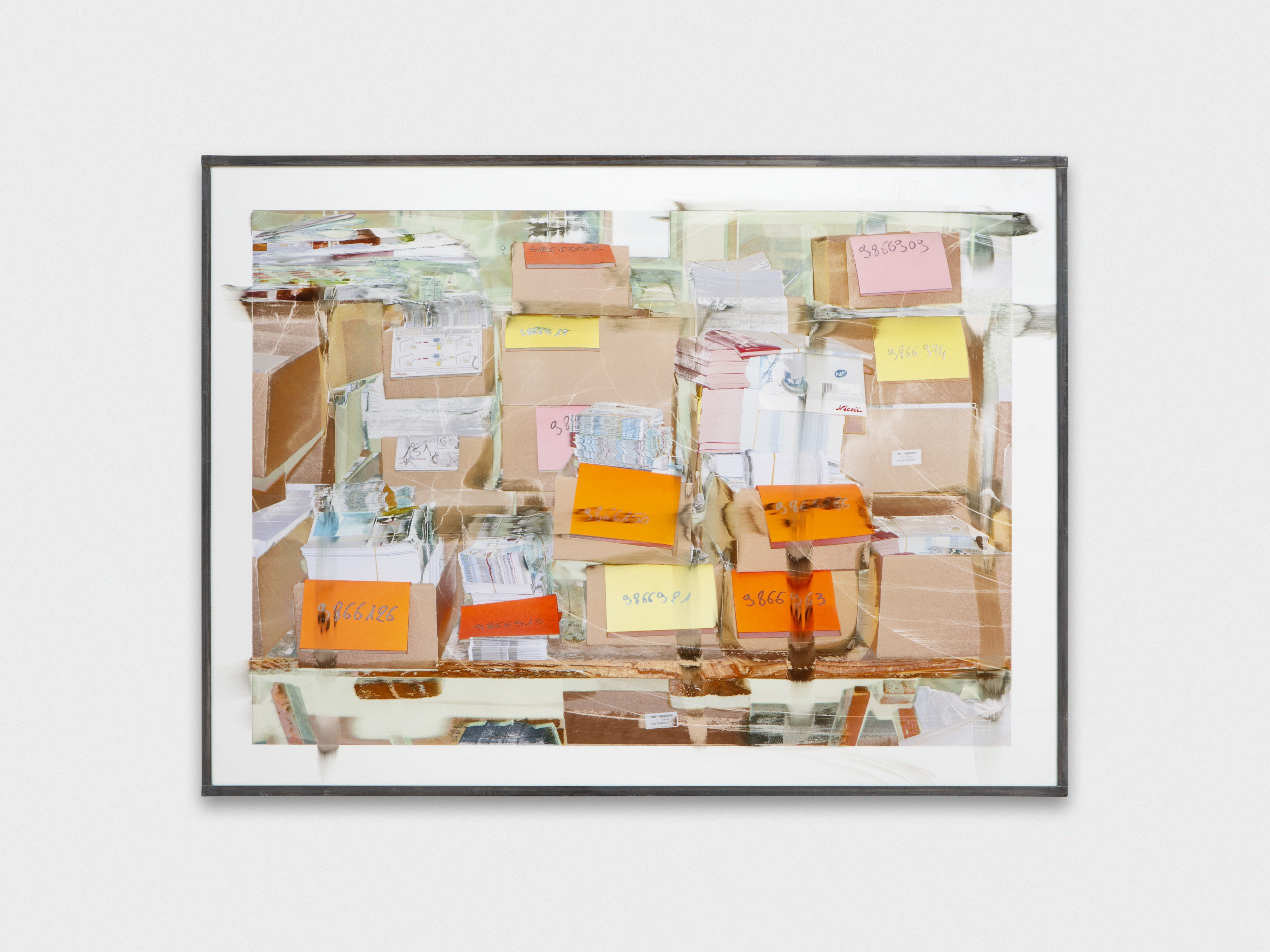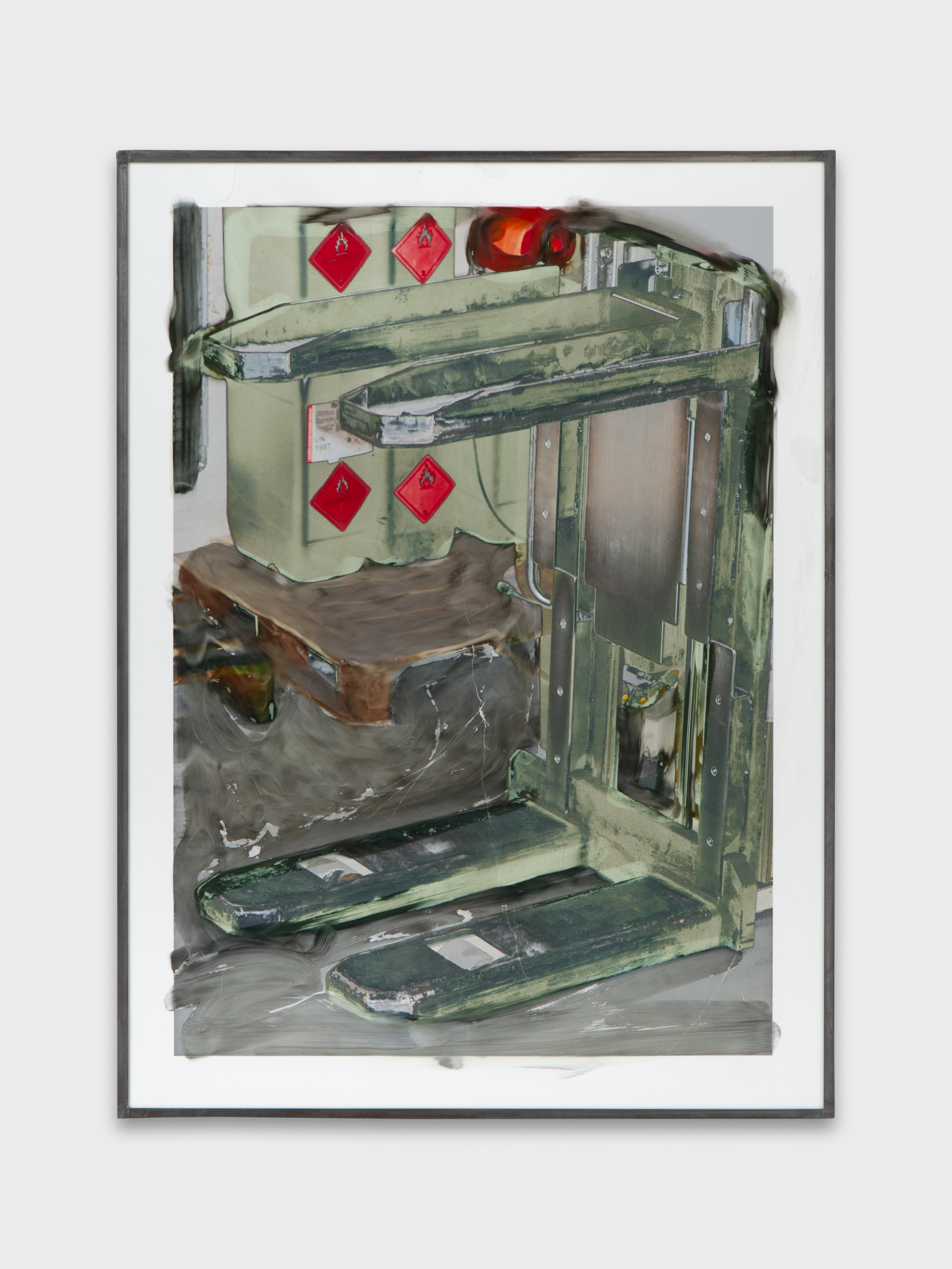 Inkjet print on plastic foil, fingertips intervention, handmade lead frame, anti-reflective glass. 31 × 42 cm