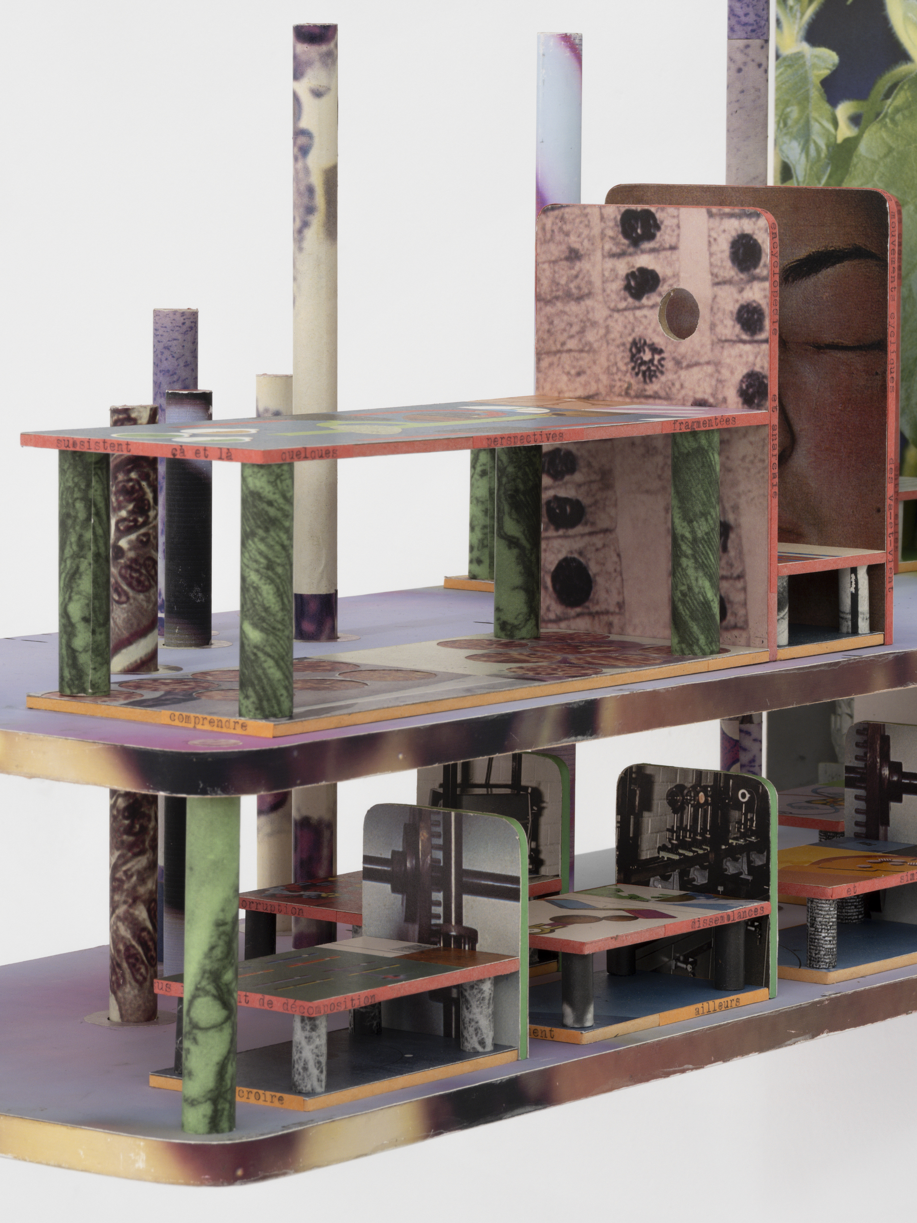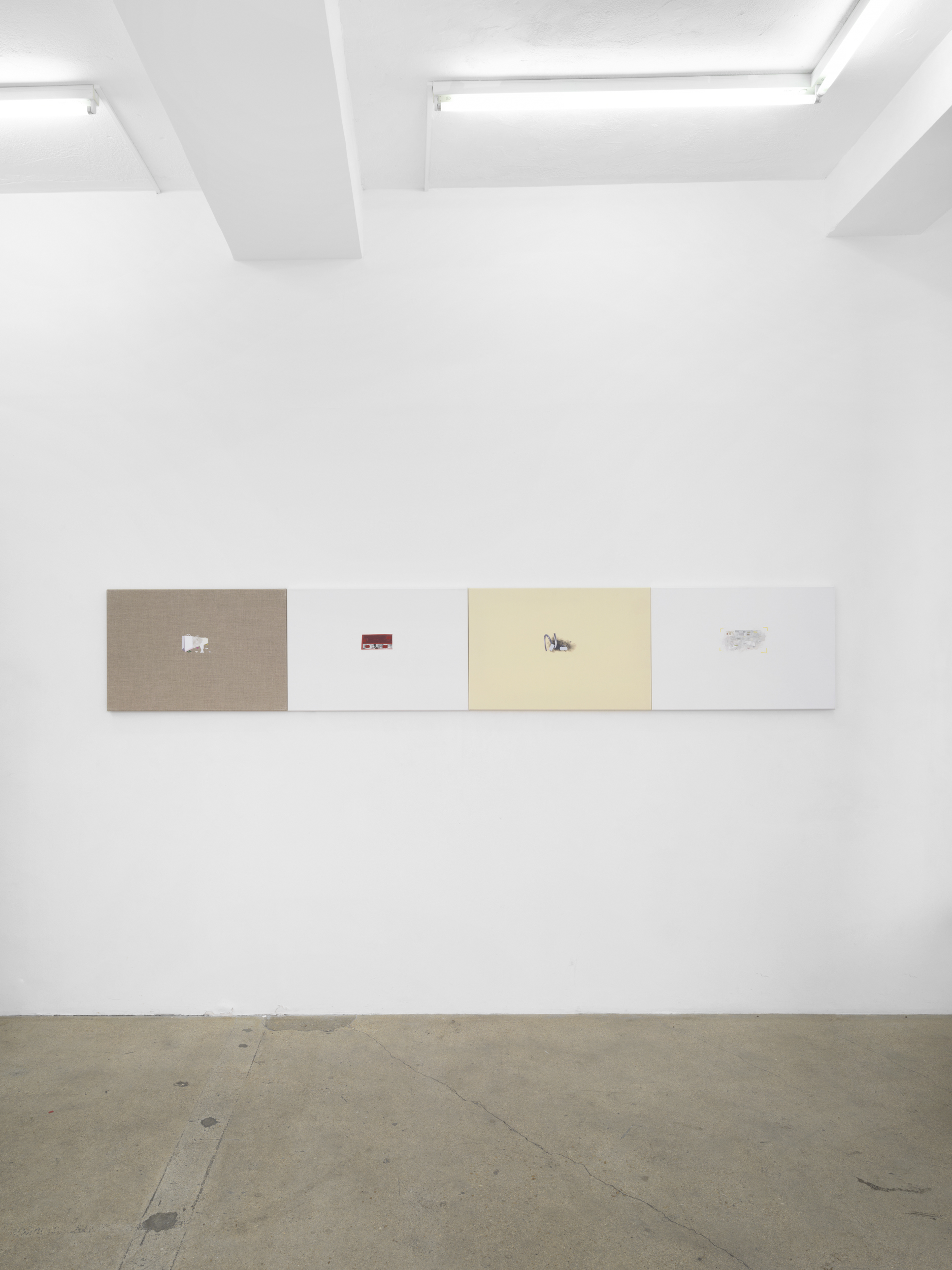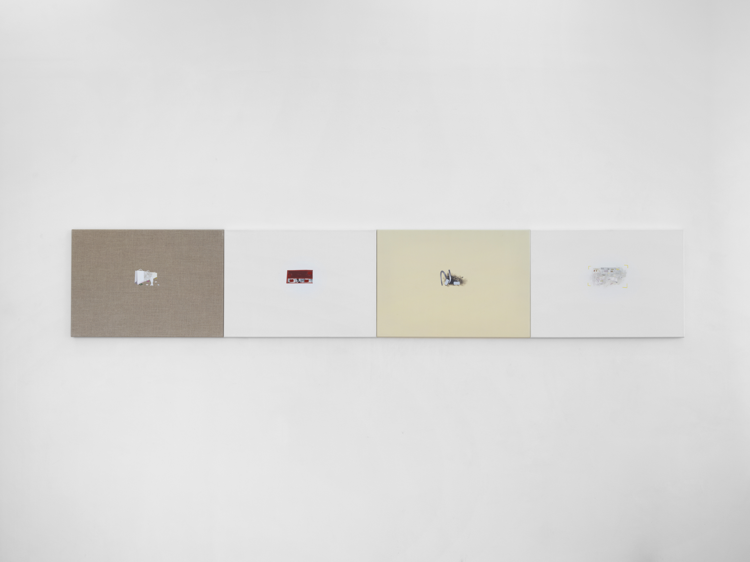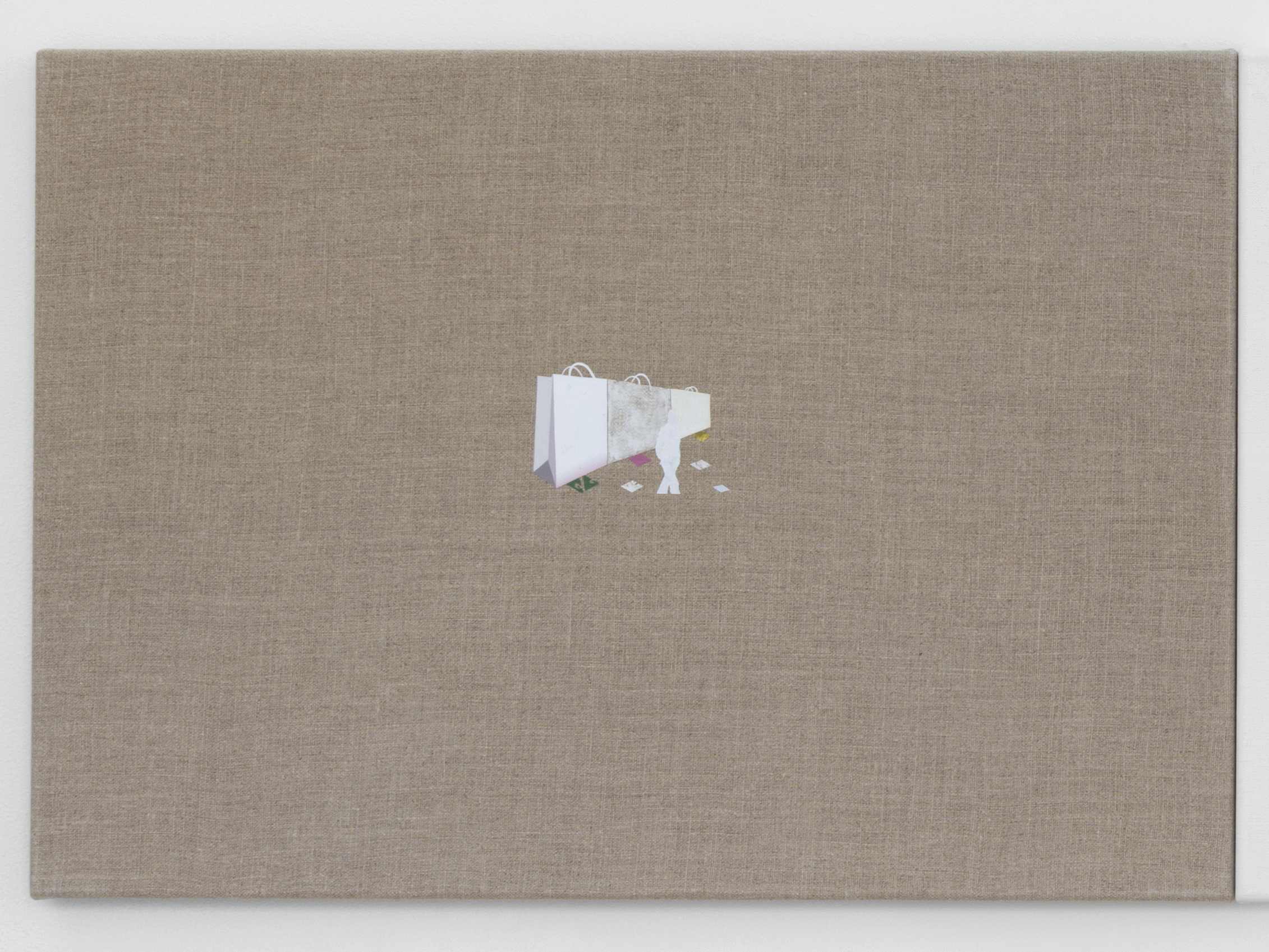 Transferprint, glycerin paint and oil on canvas. 50 × 70 × 2 cm